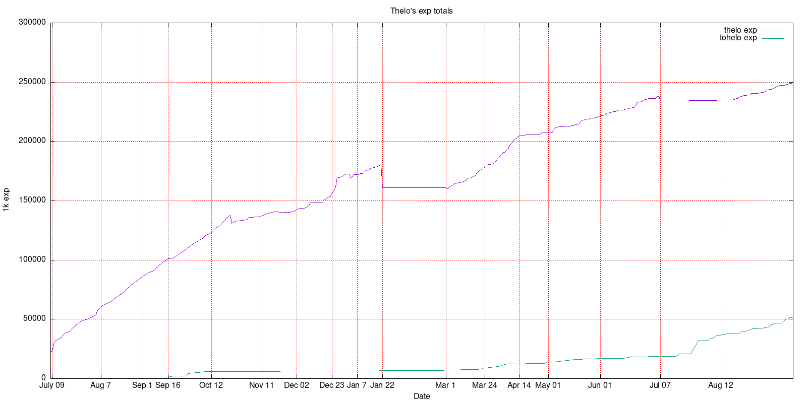 The exp graph shows my progress, which has been relatively modest since I have concentrated also on the secondary character.