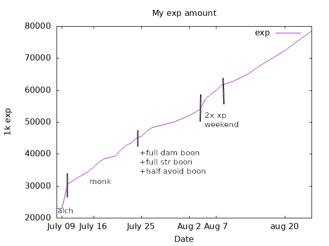 Basically, I have (still) managed to maintain steady 1M exp/day speed in average.